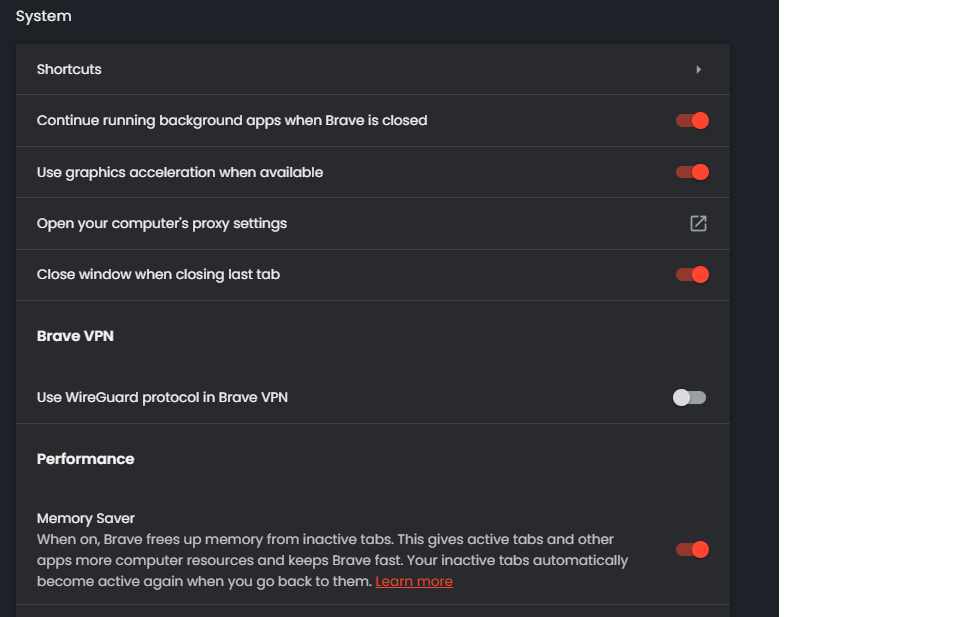 Would toggle between the 2 settings to see which one is optimised, also check task manager within Brave itself it see which tabs/process is using the most CPU resources.