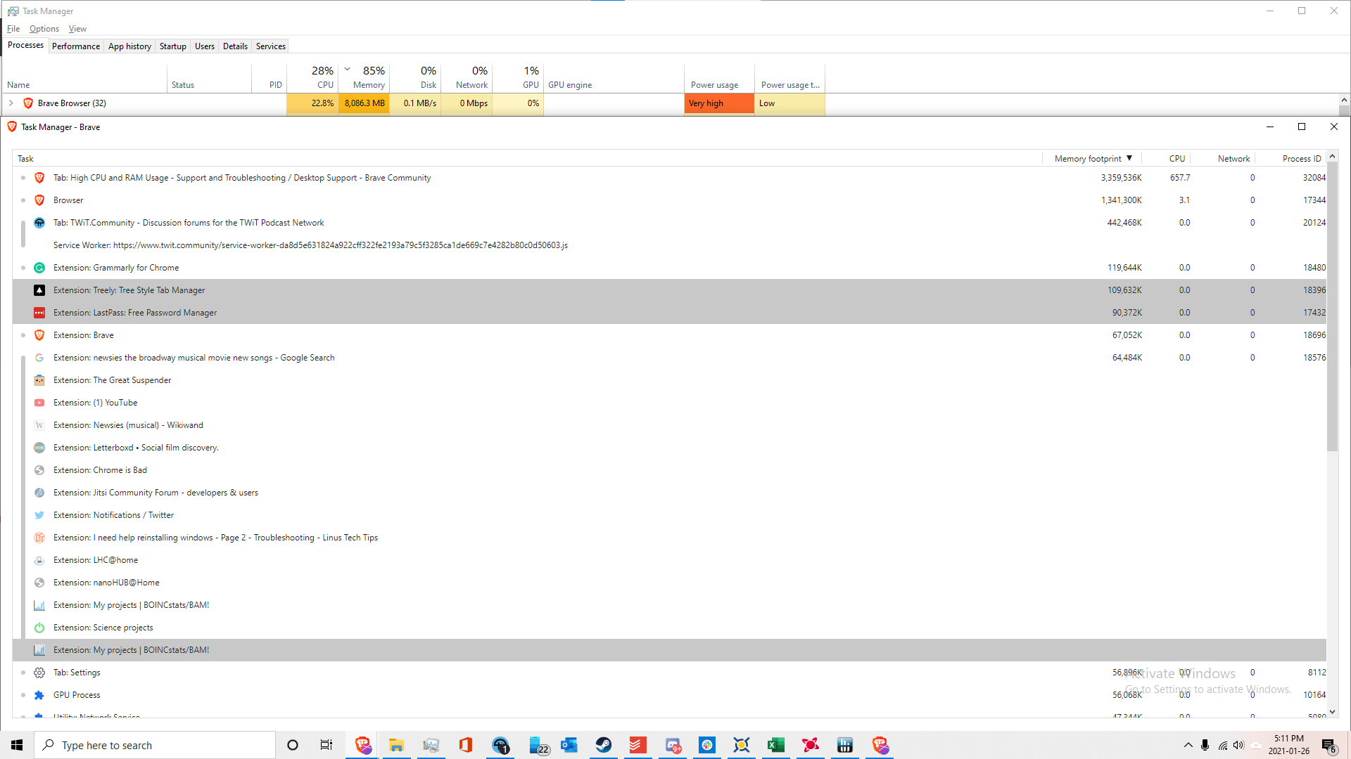 I also am now getting a 2nd Brave process that’s using over a GB of RAM
