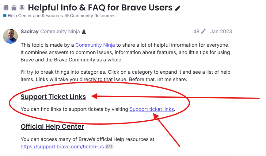 If nothing else, I have a topic I created and is pinned on top as you can see in the screenshot here: