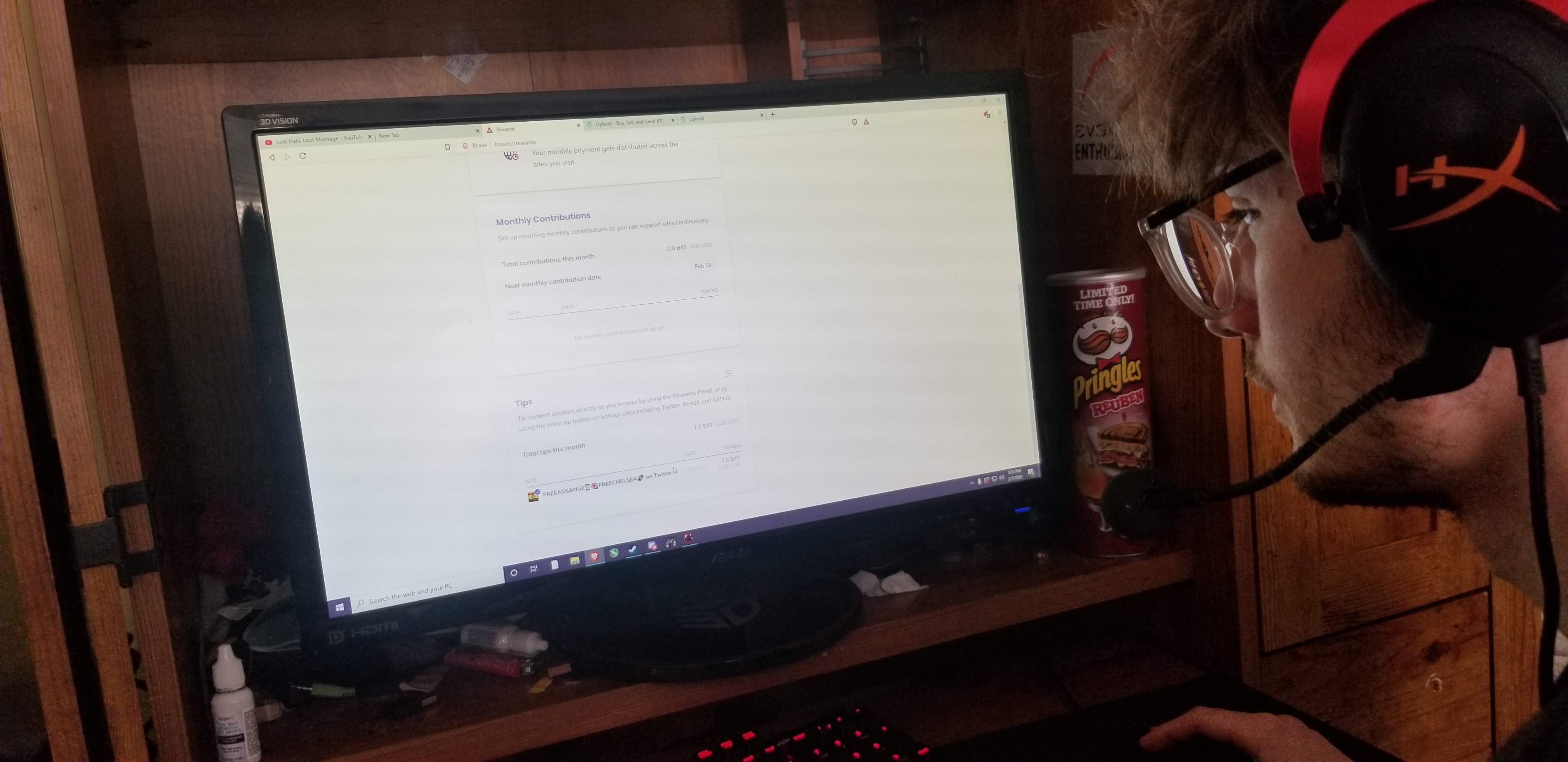 I dont know how to have him pull up the total history of contributions from previous months. He claims hes tipped me around 10 bat since he started tipping away (i got him into brave). But heres a picture of his screen infront of me