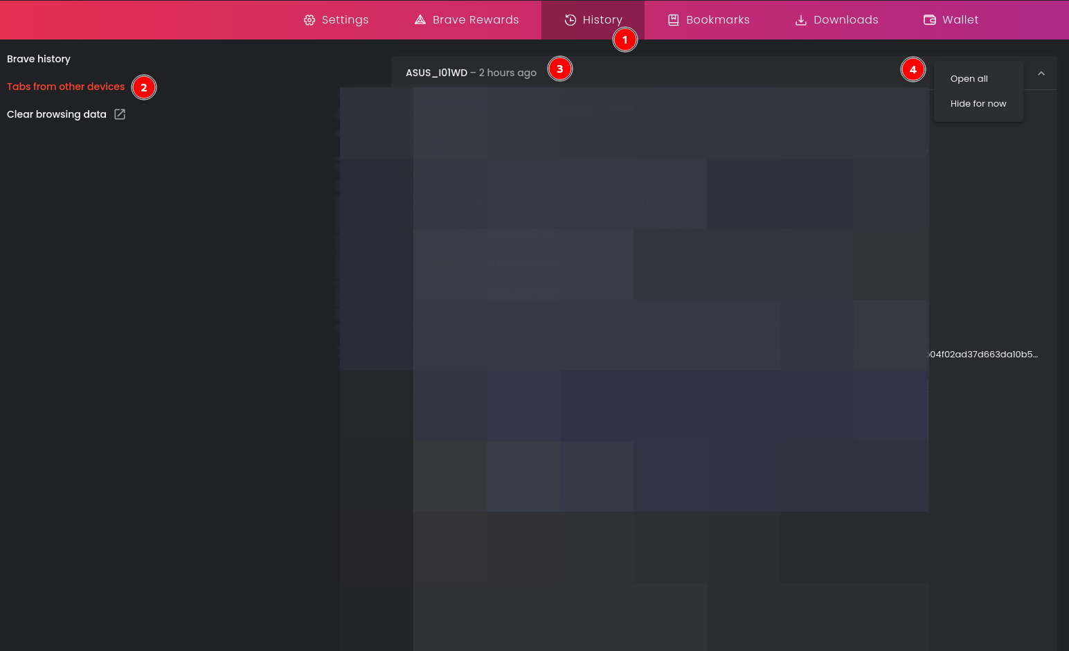On that, as you can see, I’m able to click and open all. So if you had lot of open tabs on one desktop and want to open on another, you’d just have it synced and then go to History → Tabs From Other Devices and could open from there.