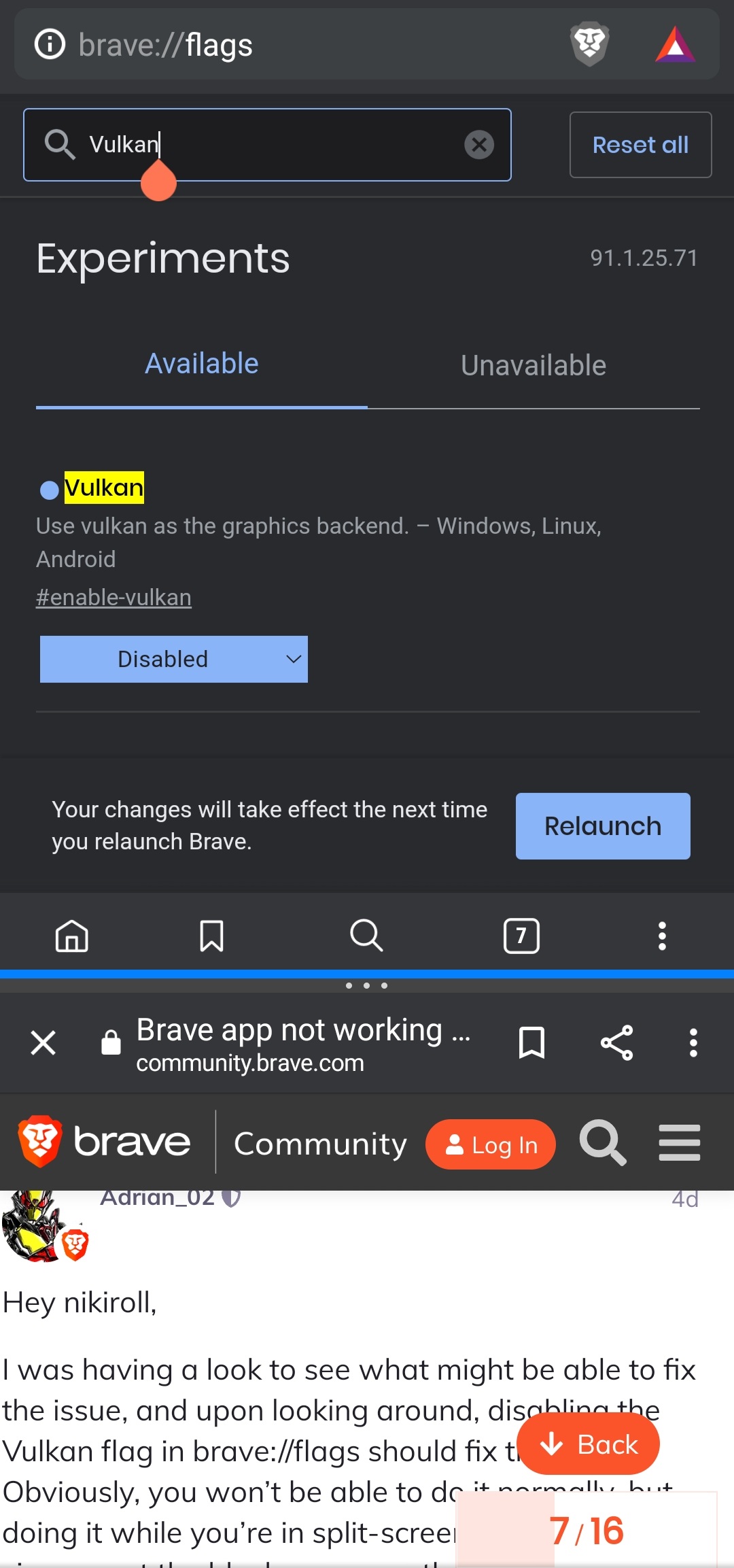 after the update, cannot view main browser page, but the thumbnail view in tabs shows the page, please help, rollback of google webview browser app doesnt help.