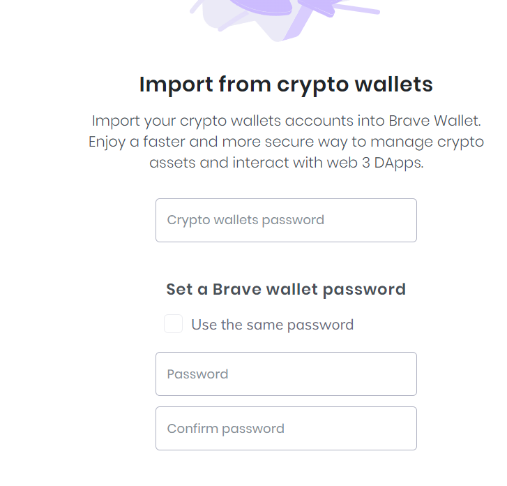 “Import your crypto wallets accounts into Brave Wallet. Enjoy a faster and more secure way to manage crypto assets and interact with web 3 DApps.”