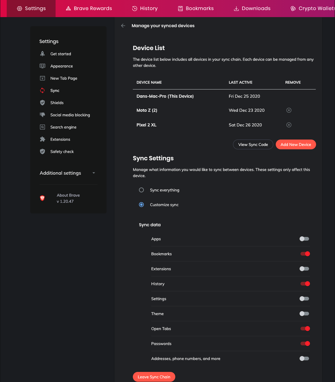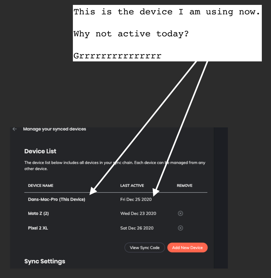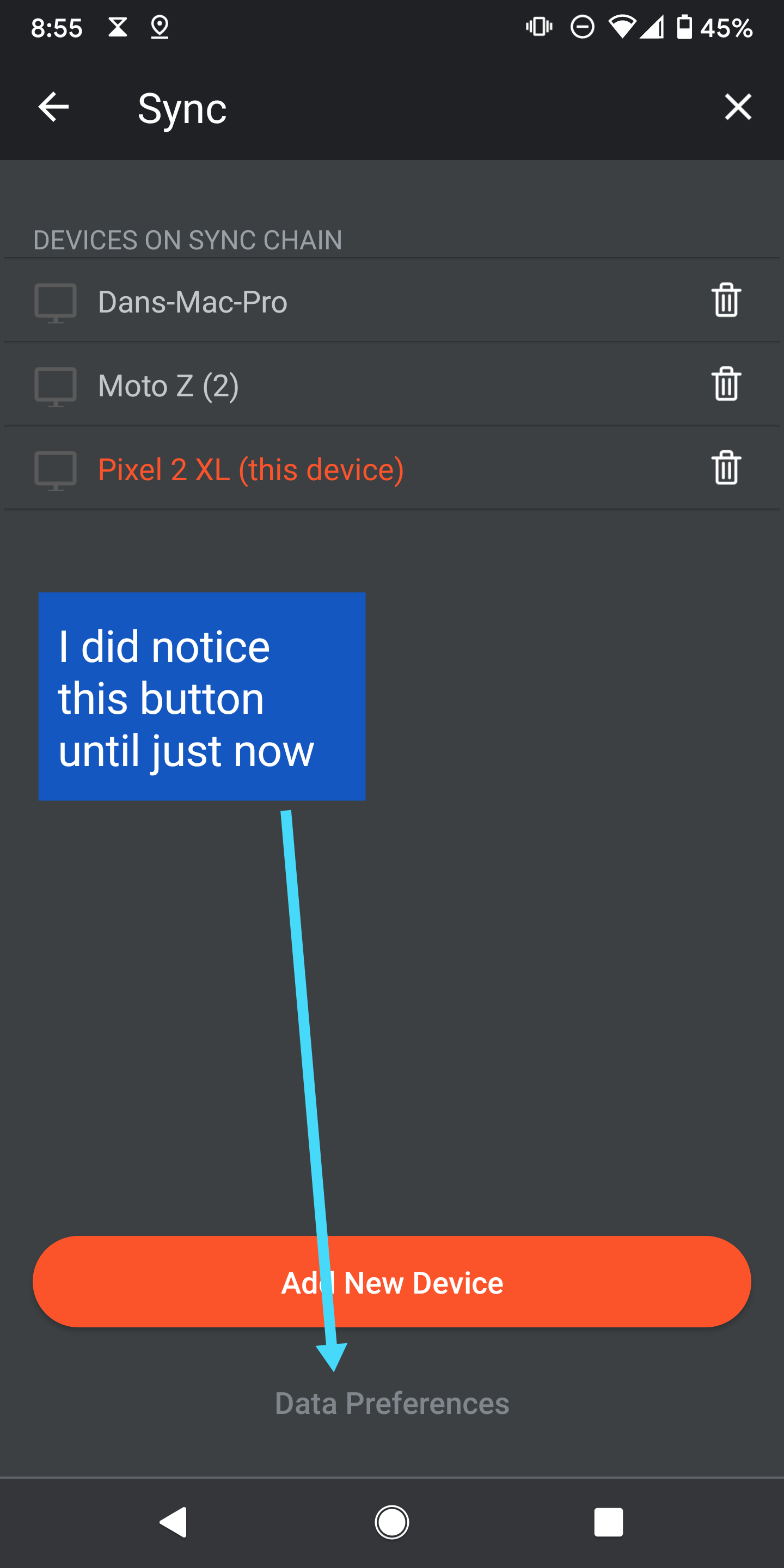 Sync Data Preferences on Desktop (macOS). I thought these preference settings would determine what data would be sync’d to all the devices in the sync chain.