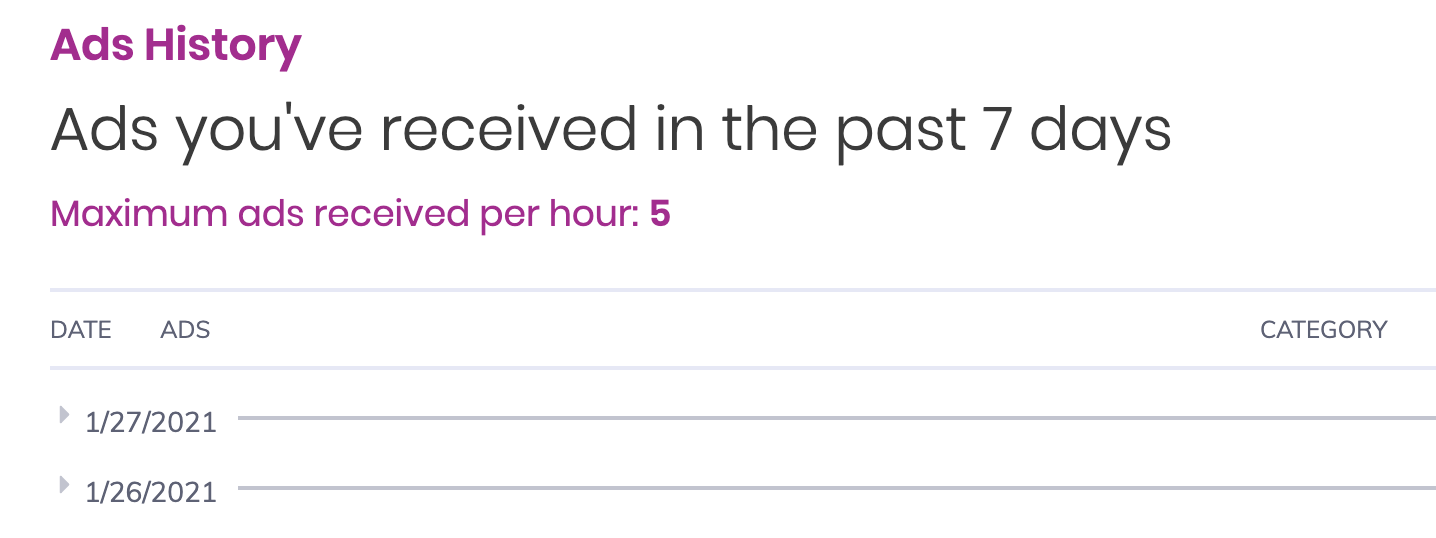 So then I decided to check my ad history to see if these were somehow not registering. Today is January 28, but my ad history ends on January 27: