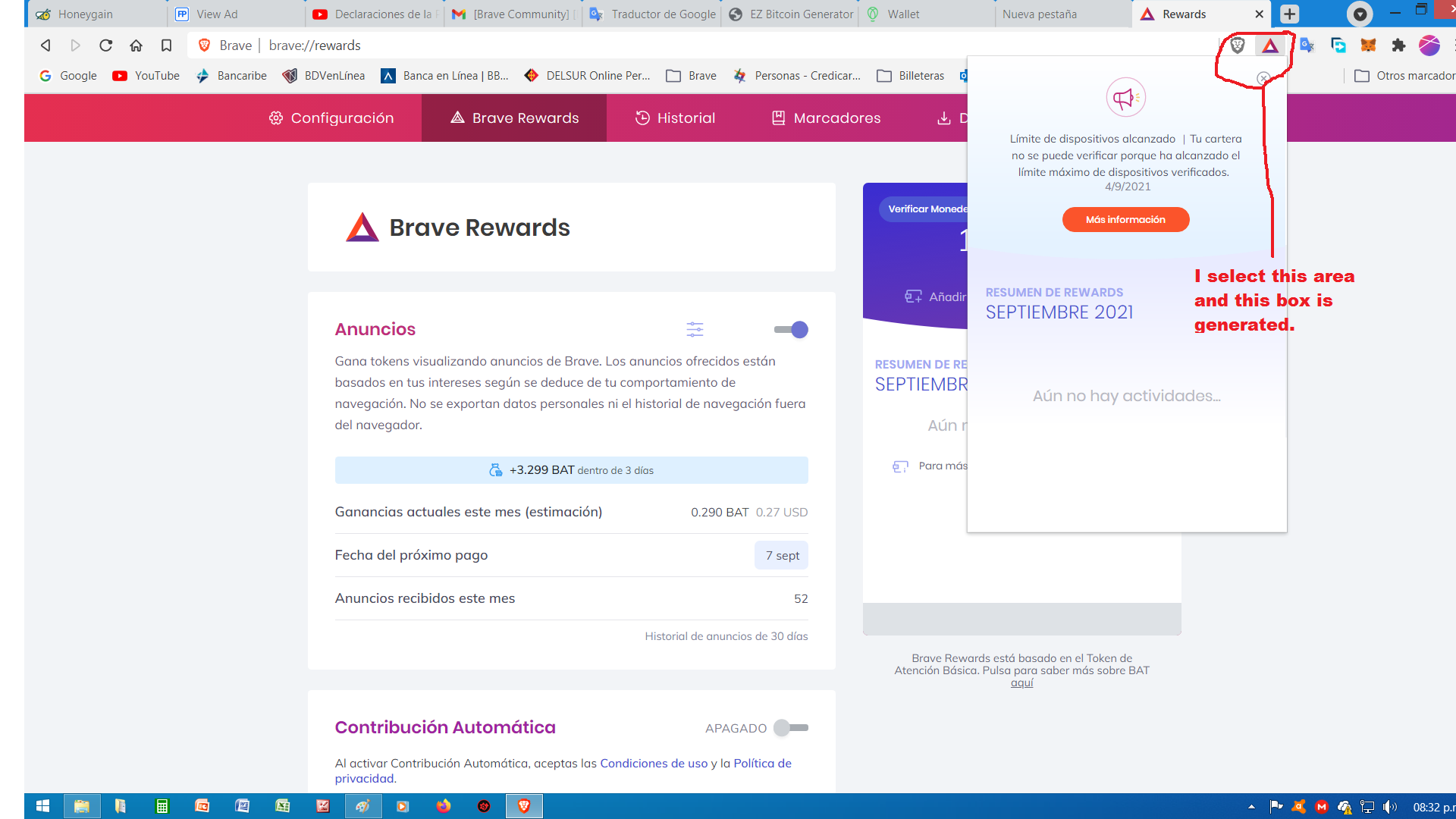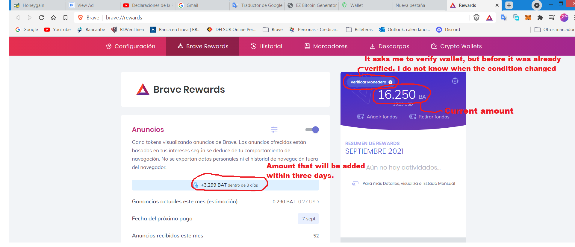 Brave the profile starts as new because I have not had a way of recovering the previous, Now as you are going to tell me that the devices that are not counted, it is going to ask me to complete a captcha to obtain the BAT. And for devices that are properly verified, they will not ask for any captcha and will get the BATs directly to your Uphold account. Just look for all devices to request a Captcha, I want you to explain to me